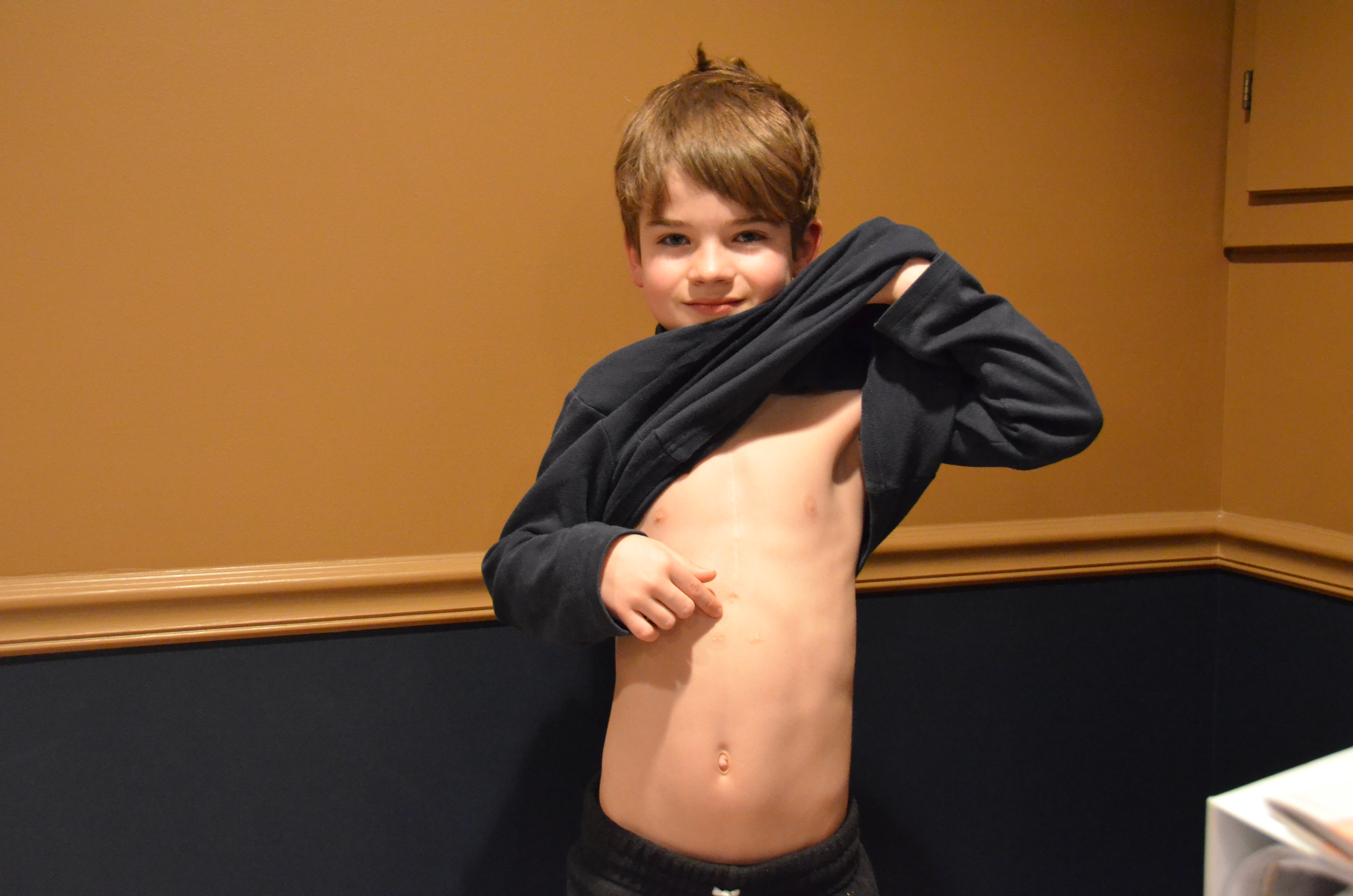 Now I just have to go figure out how to post them on this blog….  In the meantime, here is a shot of Corey showing off his scar.  Ask him what he thinks about it.  See if he doesn’t say, “I win all the biggest scar contests!”  It’s a badge of honor for him.  More to come…..